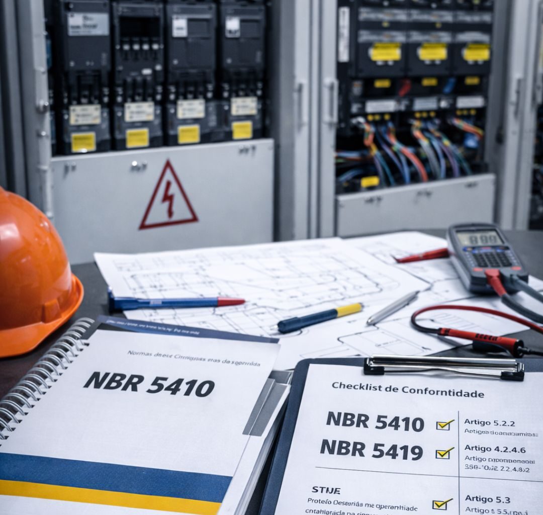 Atendemos integralmente NBR 5410, NBR 5419, NR10, NR12, além de normas setoriais específicas como regulamentações da Anvisa, normas industriais e exigências de auditorias externas. Nossa engenharia garante que toda a instalação esteja alinhada às exigências legais e técnicas, reduzindo riscos e evitando penalidades.